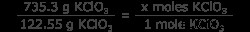 質問: 735.3 グラムの KClO3 を加熱すると生成される酸素ガスのモル数 ?